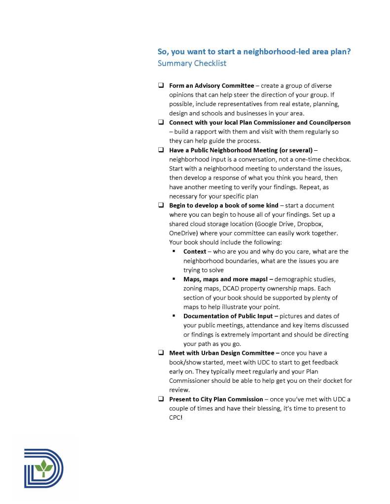 The document below is an outline for how to create and adopt a neighborhood-led plan according to past organizations who had gone through the process.
